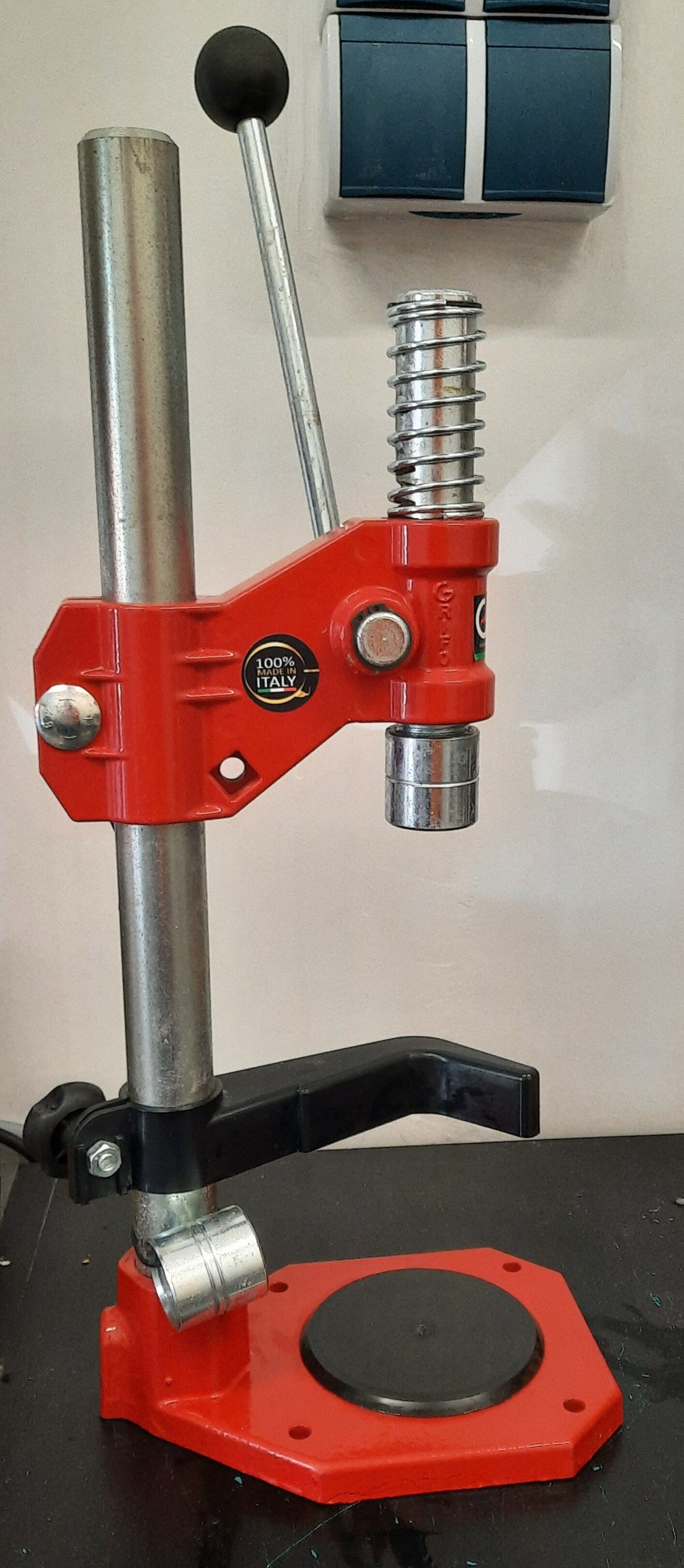 Kroonkurkapparaat Corona met gedraaide koppen 26 & 29 mm. Zwaar tafelmodel.