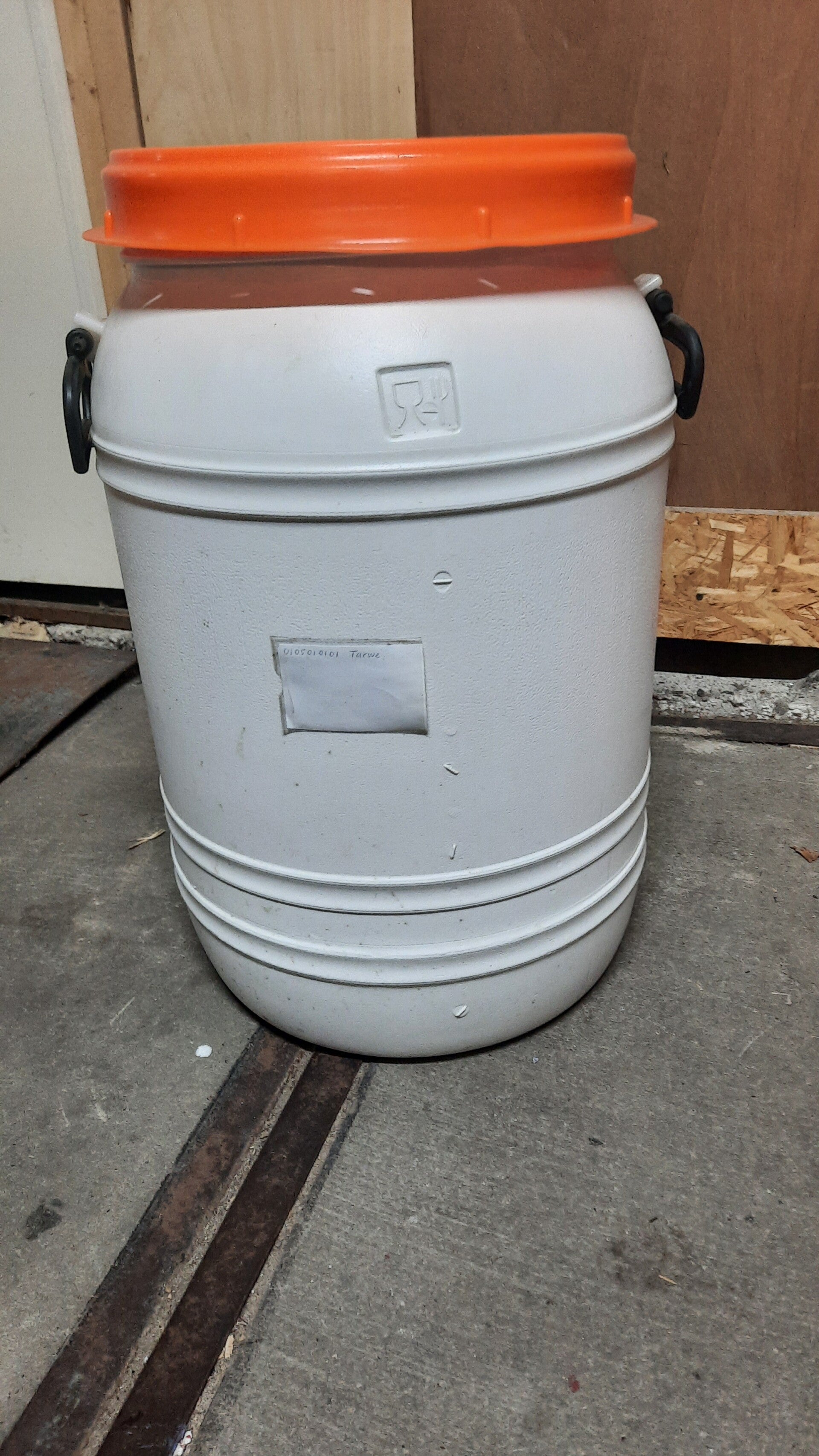 Voedselveilige ton / vat groot genoeg voor 25 kilo mout. Oerdegelijk en bij Brouwerij Stijl gebruikt om mouten in te bewaren.